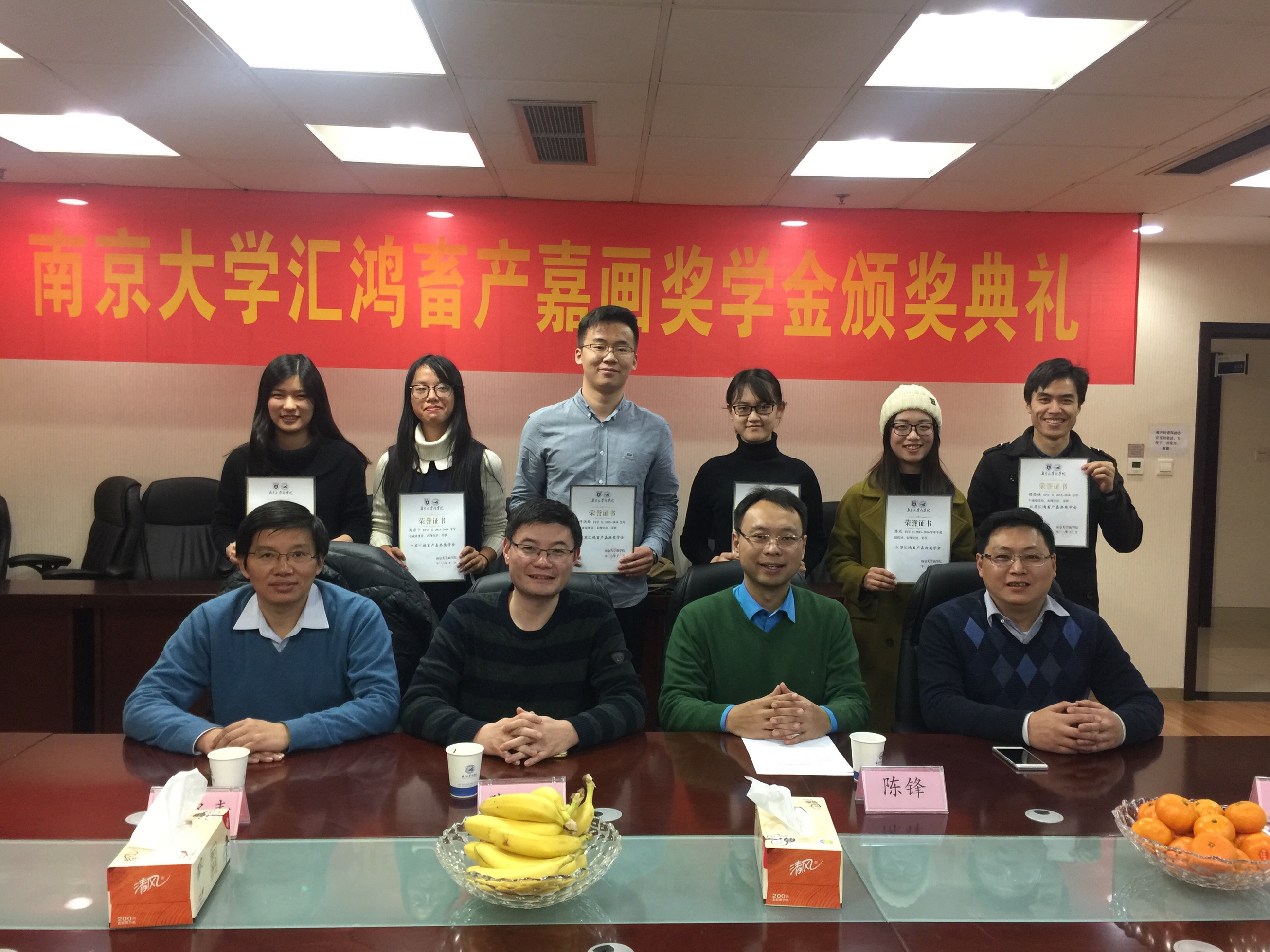 “汇鸿畜产嘉画奖学金”是由国际经济贸易系94级本科校友、江苏汇鸿嘉画文体有限公司总经理陈锋先生为回报母系而出资设立的面向国际经济贸易系2—4年级在校本科生的高额奖学金。汇鸿畜产嘉画文体公司是我省最大的外贸企业集团江苏汇鸿集团下属子公司,其画材出口额位居全国前三。该奖学金每次奖励6名各方面全面发展、学习成绩优秀、富有责任感及团队合作精神、热爱外贸事业的优秀学生,首期为期5年。今年首届奖学金共有周彦宁等6名同学获奖。陈锋校友和汇鸿嘉画文体公司张启鑫副总经理,国际经济贸易系马野青教授和方勇副教授出席了颁奖仪式。