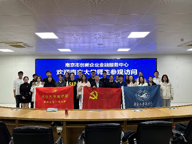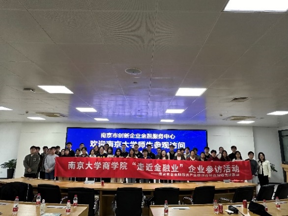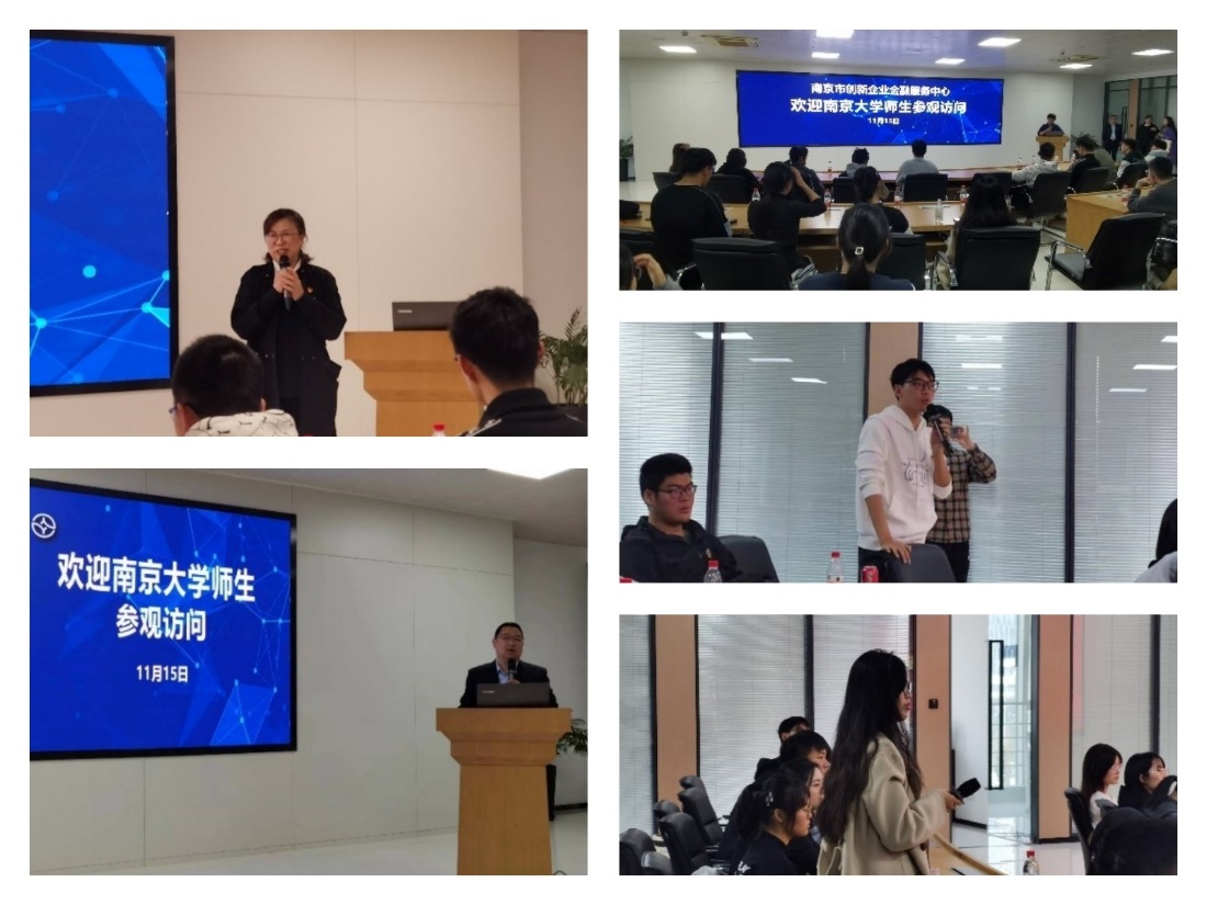 首先,师生前往坐落在建邺高新区的南京联合产权(科技)交易所有限责任公司(简称“南京联交所”)。在观看宣传片后,同学们对南京金服的运作宗旨、目标对象和运营模式有了初步了解。在此基础上,总经理冯杰留先生对南京联交所的业务情况进行了详尽的介绍。紫金投资集团以南京联交所为建设运营主体,为中小微企业打造了线上线下相结合的一站式综合金融服务平台——南京市创新企业金融服务中心(简称“南京金服”),针对金融资源浪费、融资难等问题,整合政策数据、科技等资源,着力构建“政、银、企、信”联动机制,打造普惠金融供给生态、优化南京市营商环境。聆听了冯总的介绍,同学们对集团的创新业态、金融服务等产生了浓厚兴趣,并针对中小企业法务数据运用、融资评分机制的合理性、紫金集团招聘人才要求等问题展开了踊跃的提问。