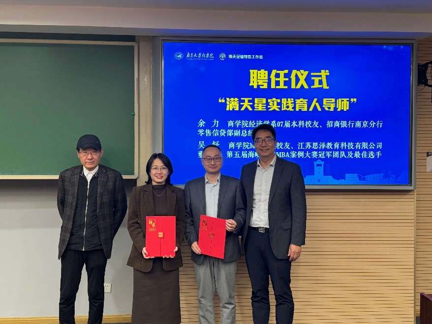 为构建有组织、有效率、有支撑的实践育人体系,满天星辅导员育人工作室聘请专业教师、智库专家、行业精英等多方专家加入“满天星”实践育人导师团,为学生实习实践和人生发展凝聚多方智慧和力量。茅宁和王宇伟共同为滚球买球的app官网优秀校友余力先生、吴舒女士颁发“满天星实践育人导师”聘书。
