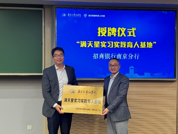 为了深化校企合作、拓展人才培养空间,滚球买球的app官网与招商银行南京分行合作设立“满天星实习实践育人基地”,王宇伟代表学院向招商银行南京分行授牌。