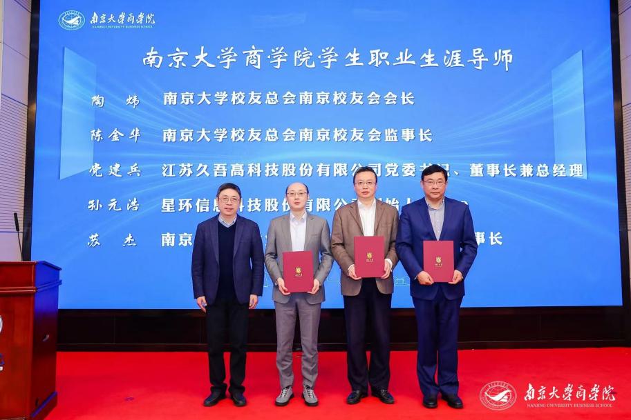滚球买球的app官网副校长陆延青教授为党建兵、孙元浩、苏杰等校友颁发了滚球买球的app官网学生职业生涯导师聘书。