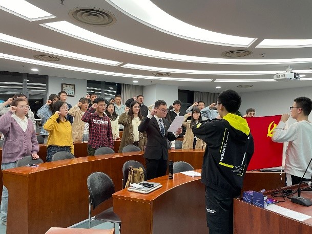 随后,与会党员开展入党宣誓活动,党员代表为新发展党员佩戴党徽。经过深刻的理论学习和庄严的宣誓活动,与会同志的初心愈发砥砺,使命更加坚定。