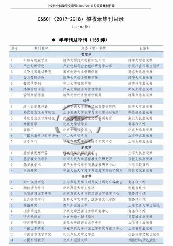 根据《中文社会科学引文索引》数据库建设的需要,滚球买球的app官网中国社会科学研究评价中心经过征集、统计、审核、遴选等程序,确定了《中文社会科学引文(CSSCI)来源期刊及集刊(2017-2018)目录》。《南大商学评论》再度入选中文社会科学引文索引(CSSCI)收录集刊目录。在此,我们向关心、支持本刊发展的同仁们表示衷心的感谢!