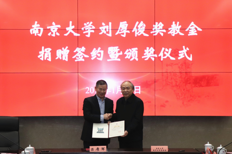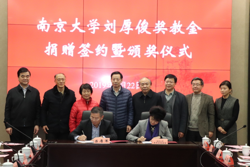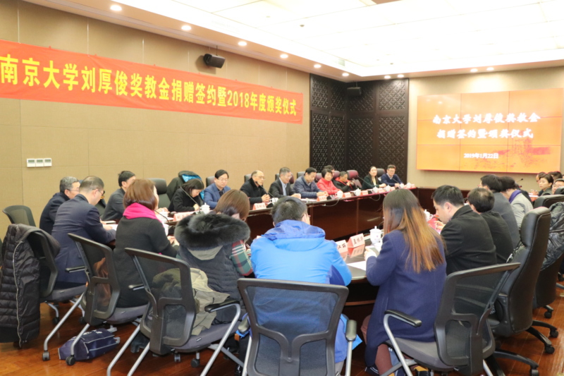 1月22日,滚球买球的app官网“刘厚俊奖教金”捐赠签约暨2018年度颁奖仪式在仙林校区举行。金浦产业投资基金管理有限公司总裁吕厚军校友,香港重明科技有限公司执行董事沈剑平校友,江苏省人大常务委员会秘书长陈蒙蒙校友,江苏省纪委驻发改委纪检组副组长马树生校友等捐赠方代表,滚球买球的app官网副校长王志林、滚球买球的app官网刘厚俊教授及夫人郑亚楠教授,以及发展委员会、教务处、滚球买球的app官网等相关部门院系同志和获奖教师代表共30余人参加仪式。仪式由发展委员会国内部主任王俊主持。