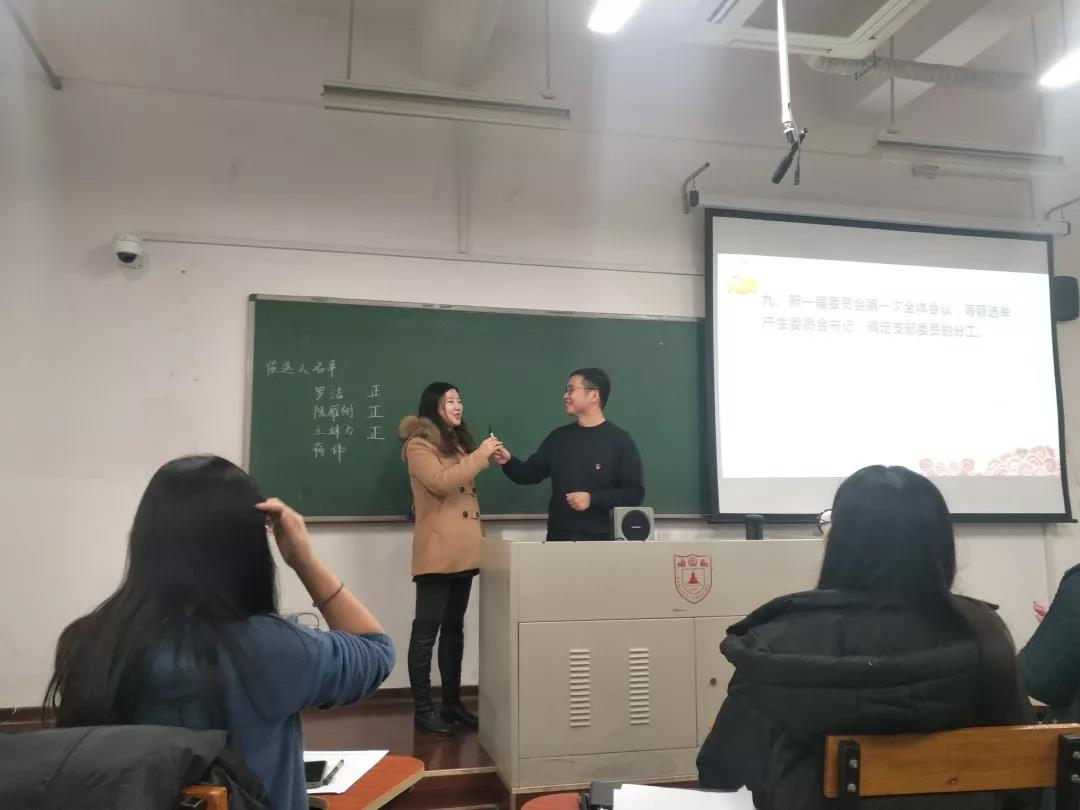 2019年12月23日中午,滚球买球的app官网本科生仙林党支部在仙一112教室召开了专题组织生活会和党支部换届大会。滚球买球的app官网党委副书记吕亚红同志、党支部书记、支委成员等全体党员、预备党员和发展对象出席会议。大会通过集中学习、相互交流、谈心谈话、述职评议、公平评定的方式,严肃认真地开展了批评与自我批评,强化了党的观念,提高了党性修养,以期更好地发挥基层党组织战斗堡垒作用和党员先锋模范作用。