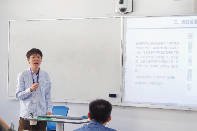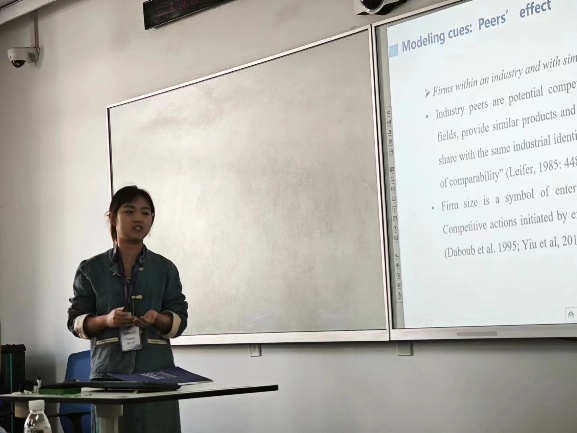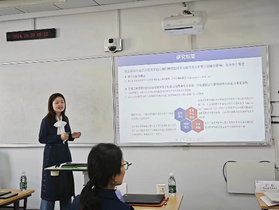 平行论坛6的主题是“AI赋能”,地点择善楼311。吉林大学博士研究生唐思思基于系统观,明确了AI系统由AI技术、高管团队行业经验多样性、AI技术人力资源、AI管理人力资源和大数据源多样性5种组件构成,并在此基础上构建了一个复杂中介模型,讨论如何优化AI系统配置以提升智能定制惯例,从而促进数字流程、产品和商业模式创新。浙江大学博士研究生金铎基于推理学习理论和情景人工智能理论,认为 “好”同行(表现出较高绿色创新水平的同行)和 “坏”同行(受到较高环境惩罚的同行)都会对重点企业的绿色创新产生积极影响,且企业的人工智能导向会产生双重调节作用。大连理工大学博士研究生梁诗露用过深度案例研究,构建了一个关于人工智能敏捷性的流程模型,充分揭示了企业如何通过感知和响应的双重行动,利用人工智能发展其敏捷性的内在机理。浙江工业大学程聪教授系统探讨了GLLMs的背景与技术原理,以及其在战略管理研究中的应用情况与必要性,提出了一个全面的应用流程。并且他还通过案例分析,充分展示了GLLMs在人工智能专利识别、跨国并购媒体反应分析和企业数字平台战略变革分析等方面的应用。吉林大学马鸿佳教授、大连理工大学崔淼教授、以及浙江工业大学程聪教授展开了启发性讨论。