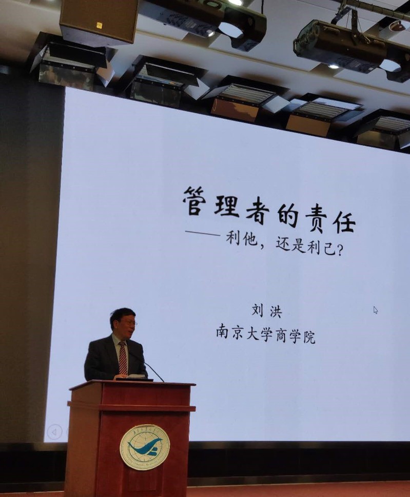 中共滚球买球的app官网党委书记刘洪教授演讲的主题是“管理者的责任--利他,还是利己?”。刘洪教授指出对于如何做管理者这个问题,德鲁克认为管理者需要具备的基本条件是,品格正直,而不是拥有天赋。刘洪教授结合德鲁克管理思想指出,考察一个组织是否优秀,就是要看它能否帮助其成员把长处都发挥出来,并利用每一个人的长处帮助他人,取得成效。因此,对企业而言,管理者的责任,就是对组织有效,使员工有所发展。