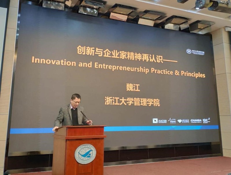 浙江大学管理学院院长、浙江大学企业组织与战略研究所所长魏江教授演讲的主题是“创新与企业家精神的再认识”。魏江教授首先回顾了中国40年间创业发展的历程:从草根创业、精英创业到大众创业。他指出,从2018年到2049年以至更远的将来,技术型创业已成为并将一直成为社会发展最迫切的创业方式,占据创业主阵地。他同时指出不可以把企业家精神和创意这两个概念人为地隔离,因为企业家精神的本质是实践,而创新是实践最活的实践的形式。魏江教授认为当我们用德鲁克的思想重新来诠释当下的科学研究、教学、人才培养方方面面的时候,要坚持尊重人性的精神,尊重人格的精神,独立的人格精神,追求人道之精神,更要追求创新之精神。