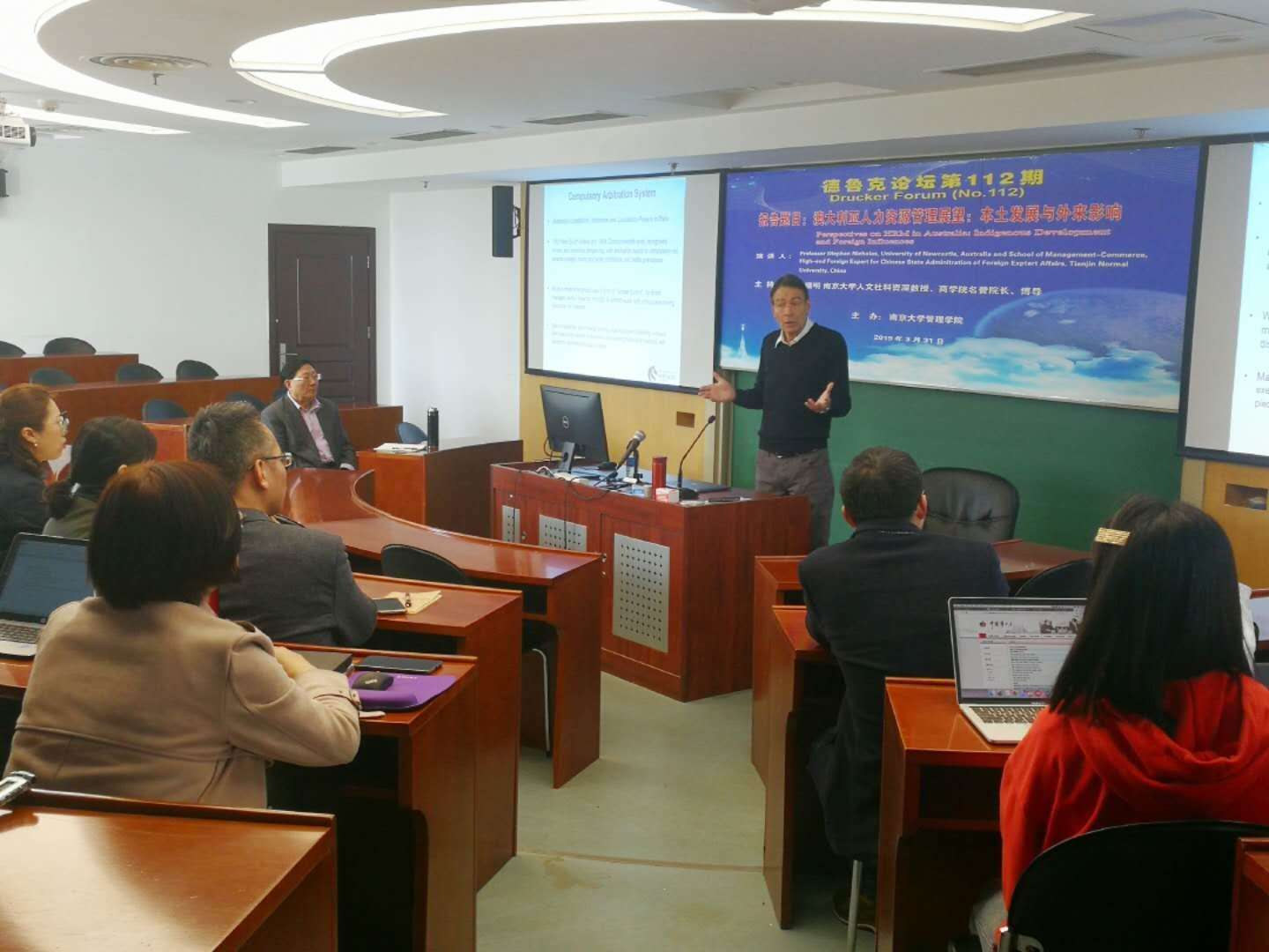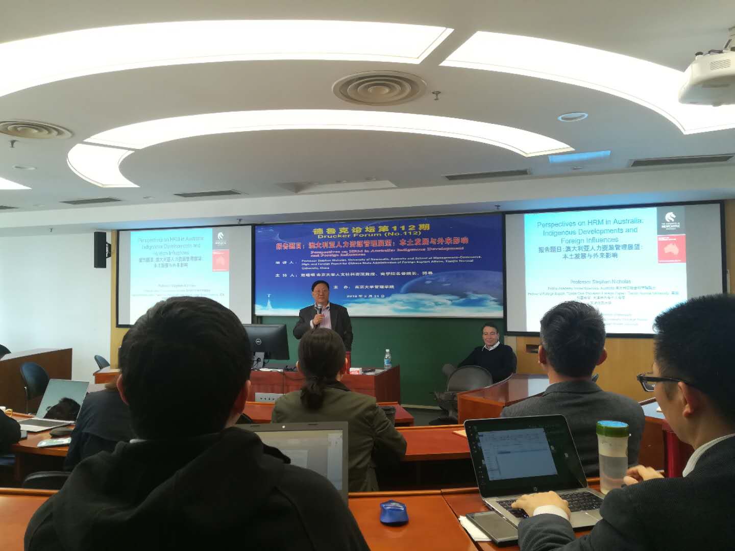 2019年3月31日上午9点30分,德鲁克论坛第112期在安中楼501教室顺利举行。澳大利亚社会科学院院士Stephen Nicholas教授受邀作了题为“Perspectives on HRM in Australia: Indigenous Developments and Foreign Influences”的主题报告。论坛由滚球买球的app官网人文社科资深教授、滚球买球的app官网名誉院长赵曙明教授主持。30多位教师、博士生和硕士生参加了本次论坛。